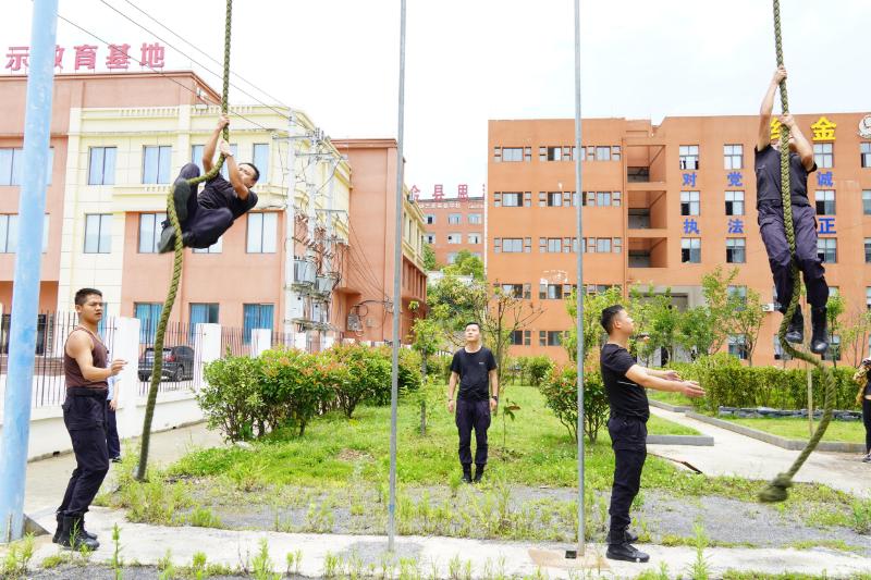 在隨后的大練兵活動(dòng)中,特警隊(duì)員們開展了多項(xiàng)科目的訓(xùn)練?!邦A(yù)備,開始!”教官一聲令下,兩名特警隊(duì)員如離弦之箭,猛地蹬地起躍,雙手緊扣垂下的繩索,腰腹與雙臂協(xié)同發(fā)力,如同矯健的壁虎迅速向上攀爬,展現(xiàn)出卓越的體能和攀爬技巧。