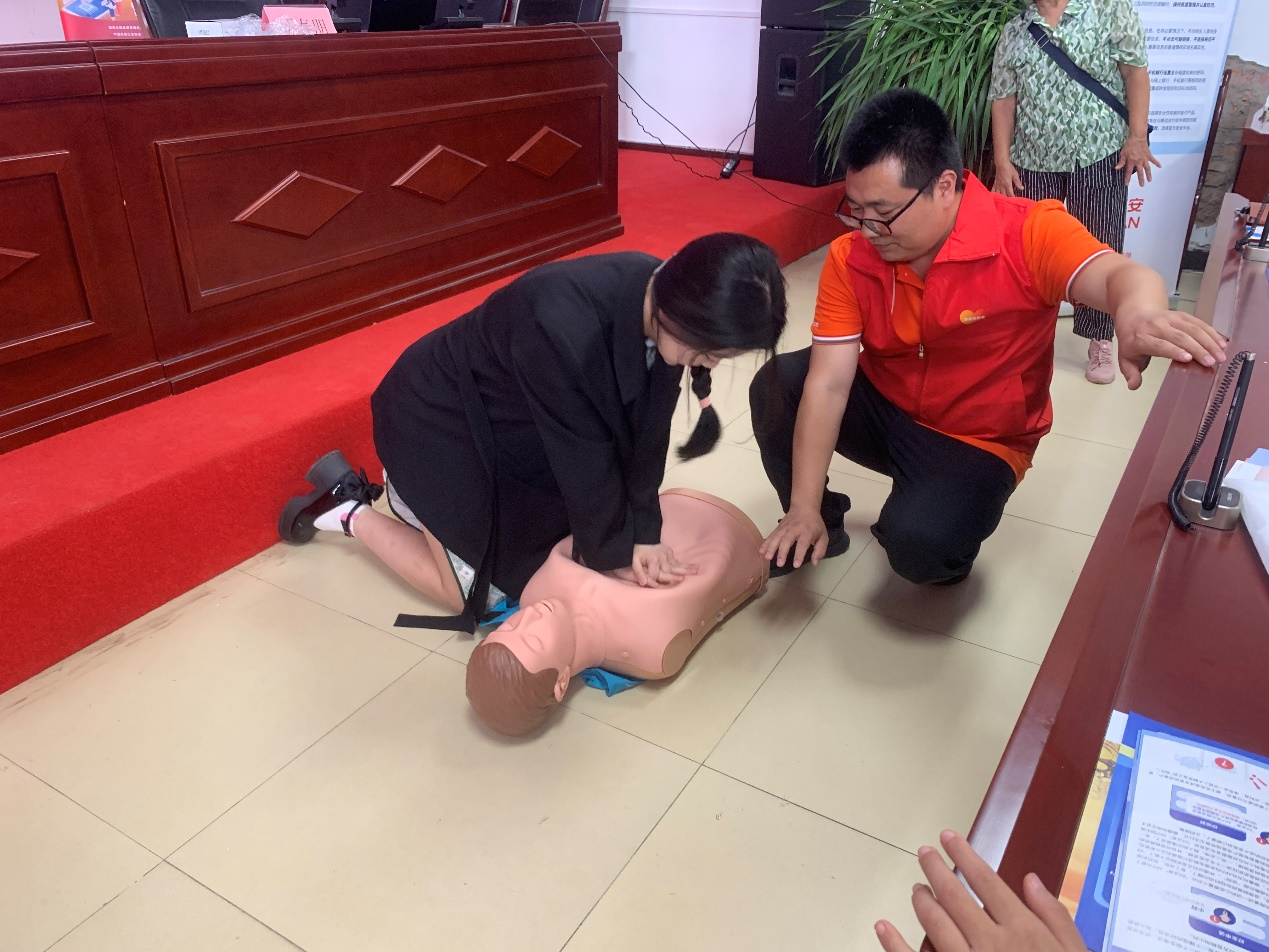急救培訓(xùn)環(huán)節(jié)則采用“理論+實操”的沉浸式教學(xué)。志愿者采取了“講解+示范+實操”三步教學(xué)法,指導(dǎo)村民掌握心肺復(fù)蘇、創(chuàng)傷包扎等實用急救技能。通過實操演練讓村民掌握了基礎(chǔ)的急救技能。此外,活動現(xiàn)場還設(shè)置了義診環(huán)節(jié),為村民提供健康咨詢,讓醫(yī)療服務(wù)更便捷地惠及基層民眾,切實體現(xiàn)了對居民身體健康的關(guān)懷與保障。