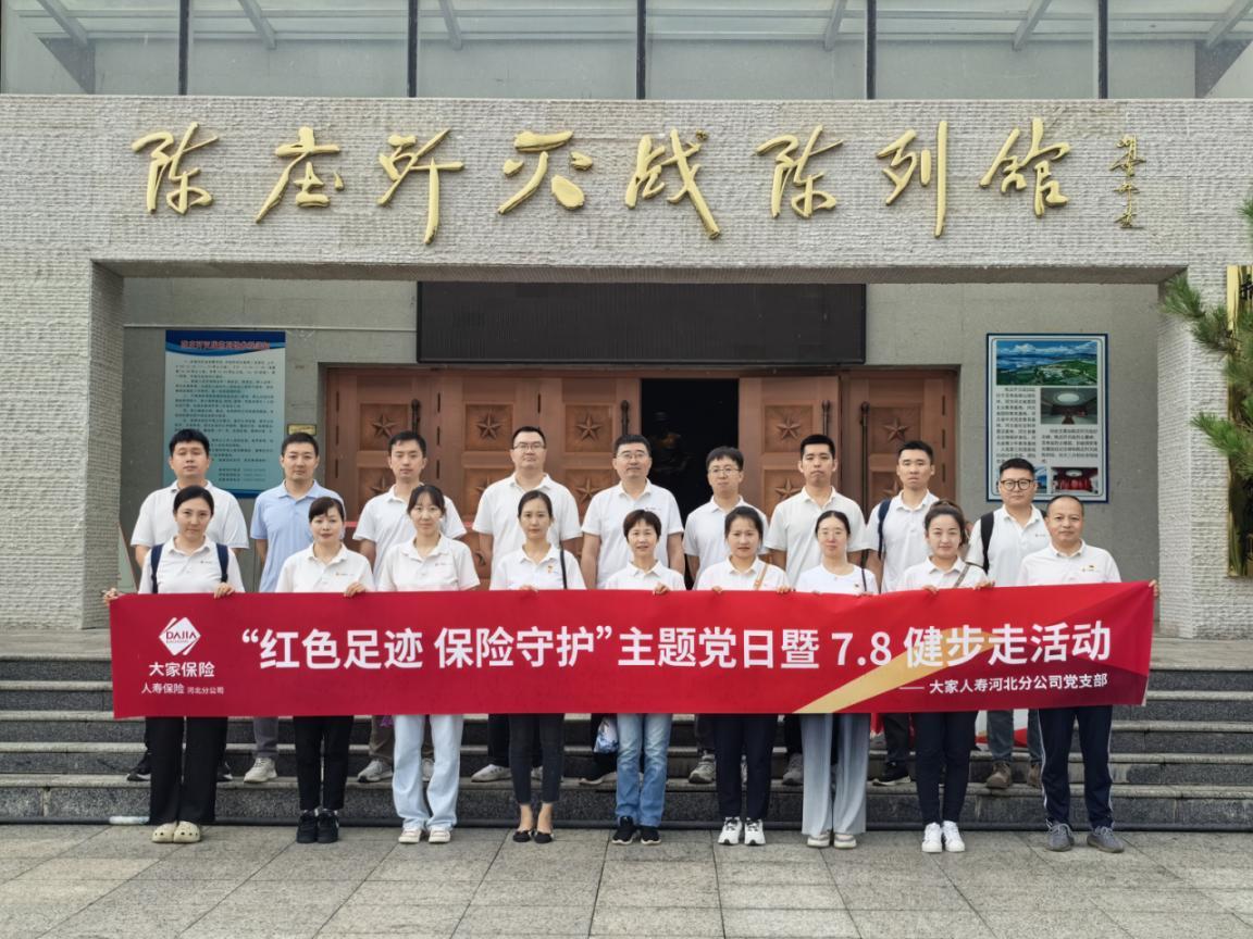 7月10日,大家人壽河北分公司黨支部組織本級及石家莊中支黨員、入黨積極分子,赴靈壽縣陳莊殲滅戰(zhàn)陳列館開展“紅色足跡 保險守護”主題黨日暨7.8健步走活動,慶祝建黨104周年和抗戰(zhàn)勝利80周年,落實“7.8全國保險公眾宣傳日”活動要求。