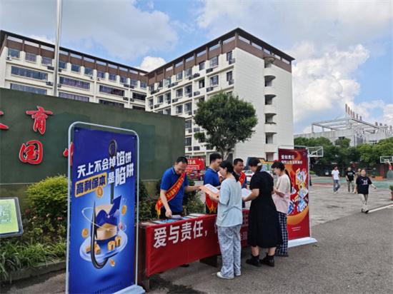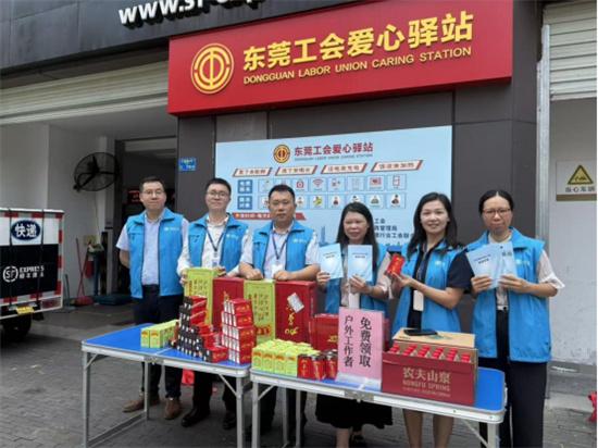 在東莞市匯峰中心,前海人壽東莞分公司的志愿者搭建起服務(wù)站點(diǎn),為環(huán)衛(wèi)工人、快遞員、外賣(mài)員等戶外工作者送上清涼飲品,同時(shí)結(jié)合宣傳材料講解電信詐騙手法和防范要點(diǎn),在送上夏日關(guān)懷的同時(shí)有效提升群眾金融風(fēng)險(xiǎn)防范意識(shí)。