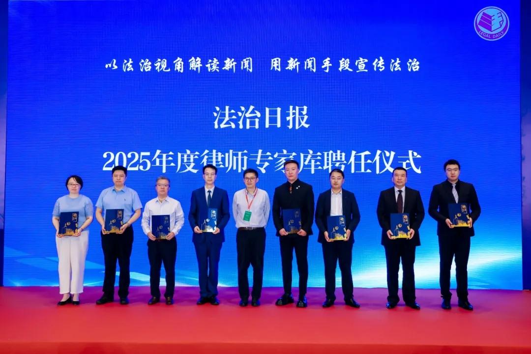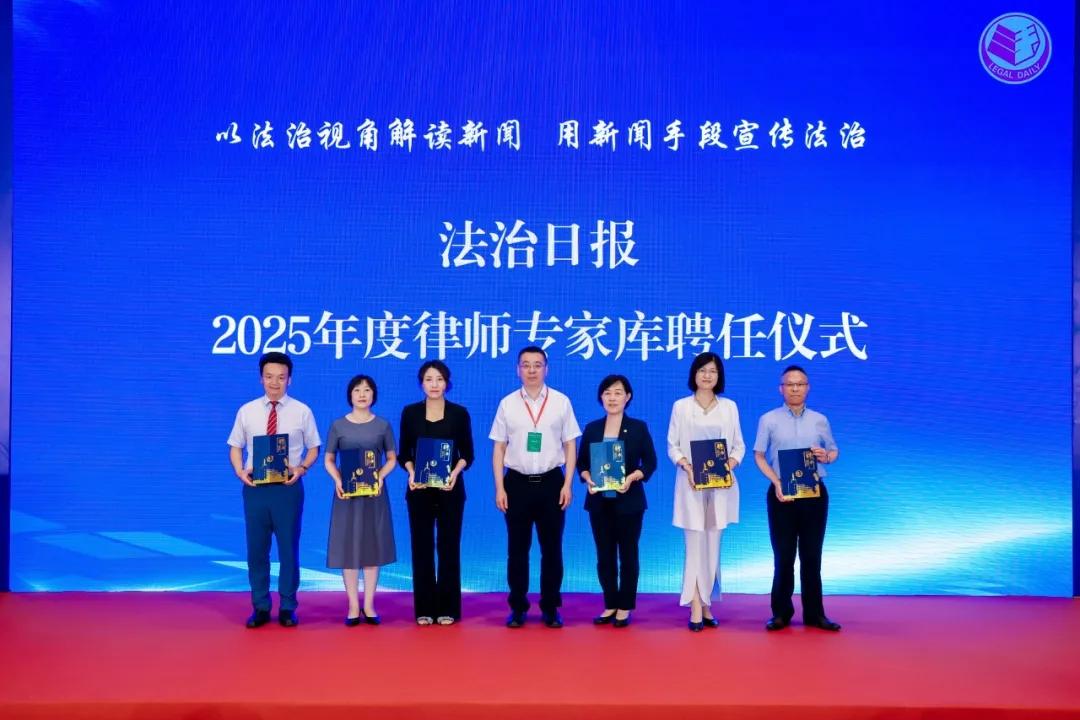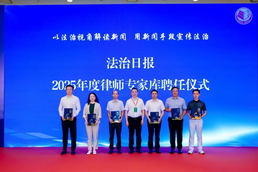 法制日?qǐng)?bào)社黨委委員、副總編輯張國(guó)慶為天達(dá)共和律師事務(wù)所合伙人趙舒杰,天達(dá)共和律師事務(wù)所合伙人馬紅海,瀛和律師事務(wù)所律師胡青春,功承瀛泰(北京)律師事務(wù)所高級(jí)合伙人才帥童,吉林良佐律師事務(wù)所主任尤金堂,江蘇萬謀律師事務(wù)所主任上官丙權(quán)頒發(fā)聘書。