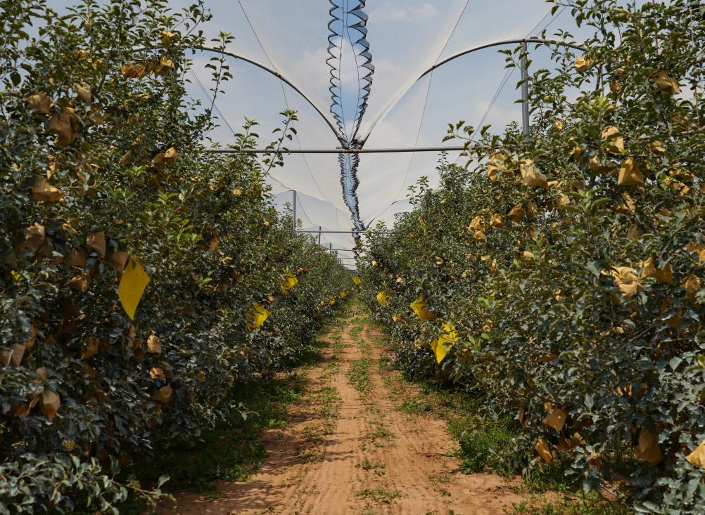 走進阿寺村的果園,濃濃的“技術范兒”撲面而來。在果農(nóng)李亞民的矮化密植新式果園里,水肥一體化灌溉設施貫穿田間,防雹網(wǎng)在陽光下折射出細碎的銀光。