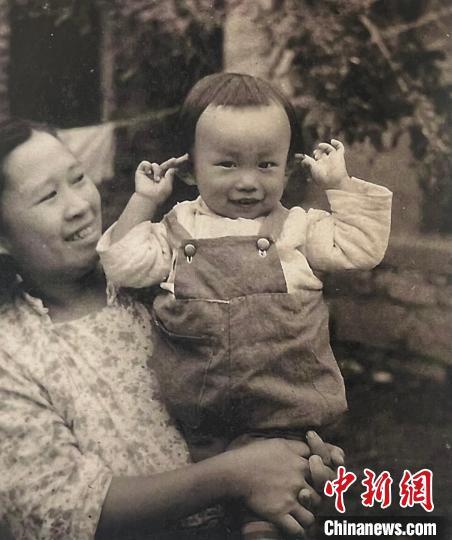 母親抱著林天民“揪耳朵”的抓拍照。 受訪者供圖