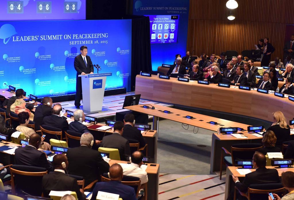 ??2015年9月,習(xí)近平總書(shū)記在紐約聯(lián)合國(guó)總部出席聯(lián)合國(guó)維和峰會(huì)并發(fā)表講話(huà)。新華社記者 李濤 攝