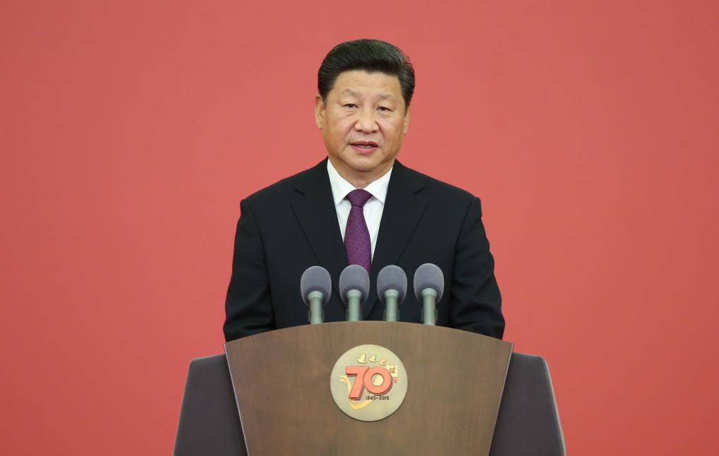 ??2015年9月,中國(guó)人民抗日戰(zhàn)爭(zhēng)勝利70周年紀(jì)念章頒發(fā)儀式在北京人民大會(huì)堂隆重舉行。習(xí)近平總書(shū)記發(fā)表重要講話(huà)。新華社記者 龐興雷 攝