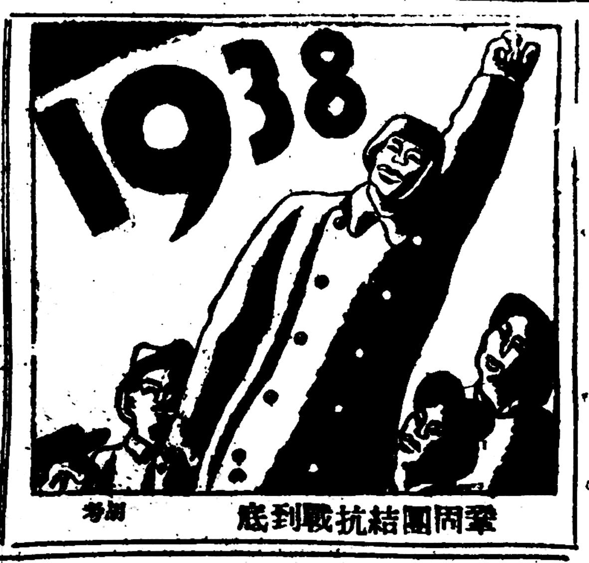 圖為1938年1月11日,《新華日報》創(chuàng)刊號刊登胡考創(chuàng)作的《鞏固團結(jié)抗戰(zhàn)到底》。