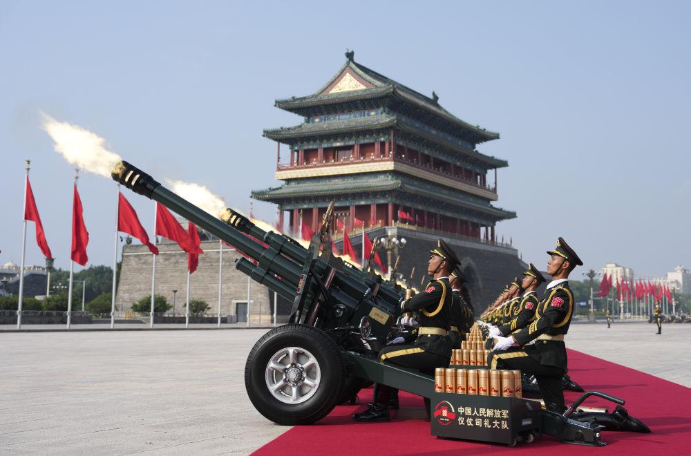 2025年9月3日,紀(jì)念中國人民抗日戰(zhàn)爭(zhēng)暨世界反法西斯戰(zhàn)爭(zhēng)勝利80周年大會(huì)在北京隆重舉行。這是禮炮在天安門廣場(chǎng)鳴響。新華社記者 牟宇 攝