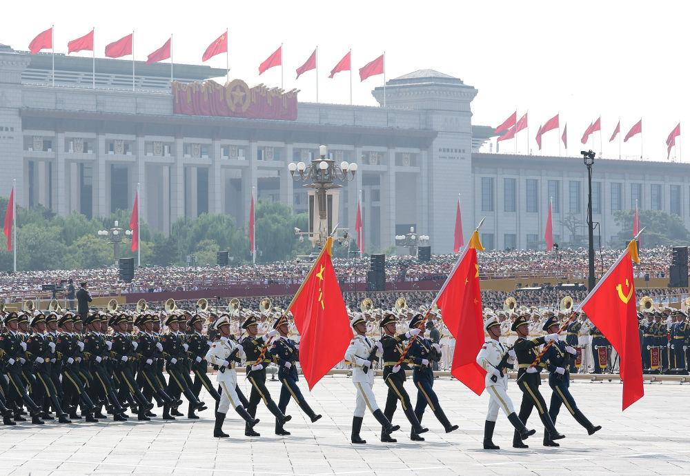 陸軍、海軍、空軍、火箭軍和軍事航天部隊(duì)、網(wǎng)絡(luò)空間部隊(duì)、信息支援部隊(duì)、聯(lián)勤保障部隊(duì)“4個(gè)軍種+4個(gè)兵種”新型軍兵種結(jié)構(gòu)布局首次集體受閱,軍兵種旗和武警部隊(duì)旗首次集中亮相。