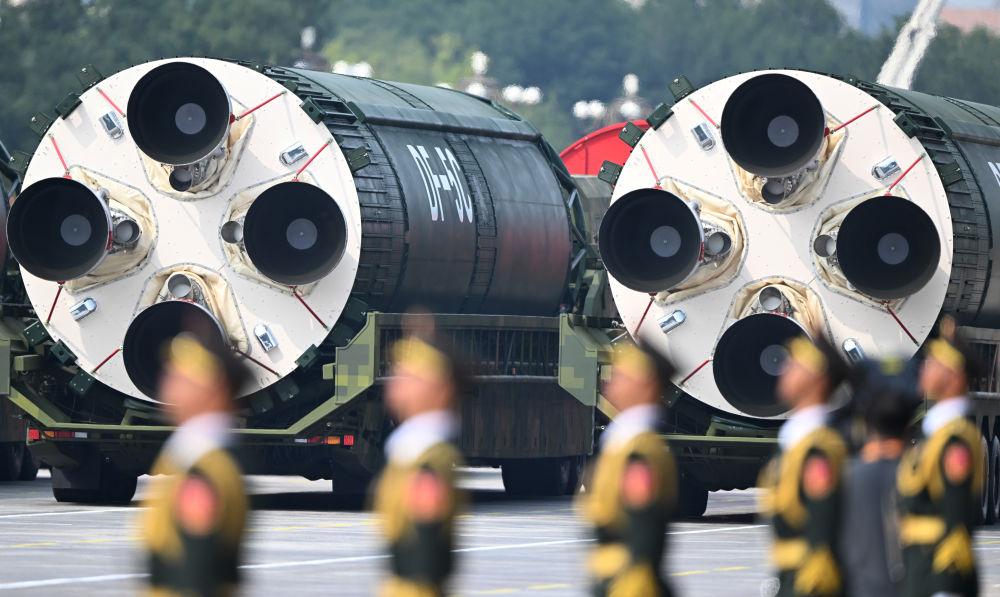 2025年9月3日,紀(jì)念中國人民抗日戰(zhàn)爭暨世界反法西斯戰(zhàn)爭勝利80周年大會(huì)在北京隆重舉行。這是核導(dǎo)彈第二方隊(duì)接受檢閱。新華社記者 楊冠宇 攝