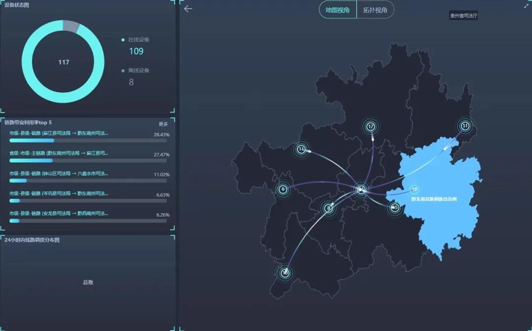 在“法治貴州云”建成前,貴州省司法行政系統(tǒng)運(yùn)行的是一張2011年建成的、覆蓋省、市、縣、鄉(xiāng)四級(jí)的獨(dú)立專網(wǎng)。但隨著時(shí)代發(fā)展,逐漸顯露出“維護(hù)成本高、帶寬資源緊”的疲態(tài)。