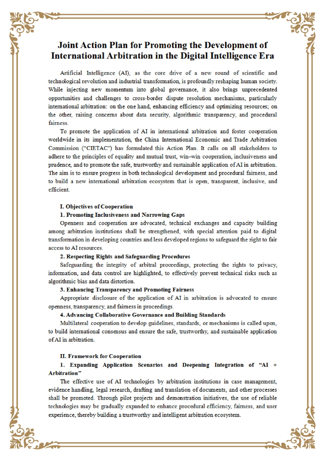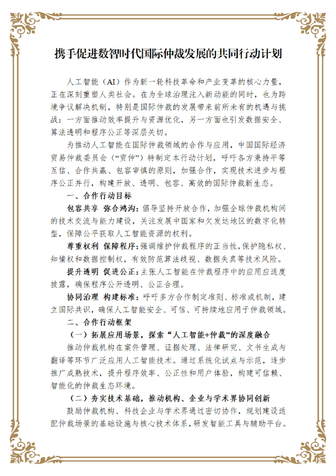 附:《攜手促進數(shù)智時代國際仲裁發(fā)展的共同行動計劃》中英文文本