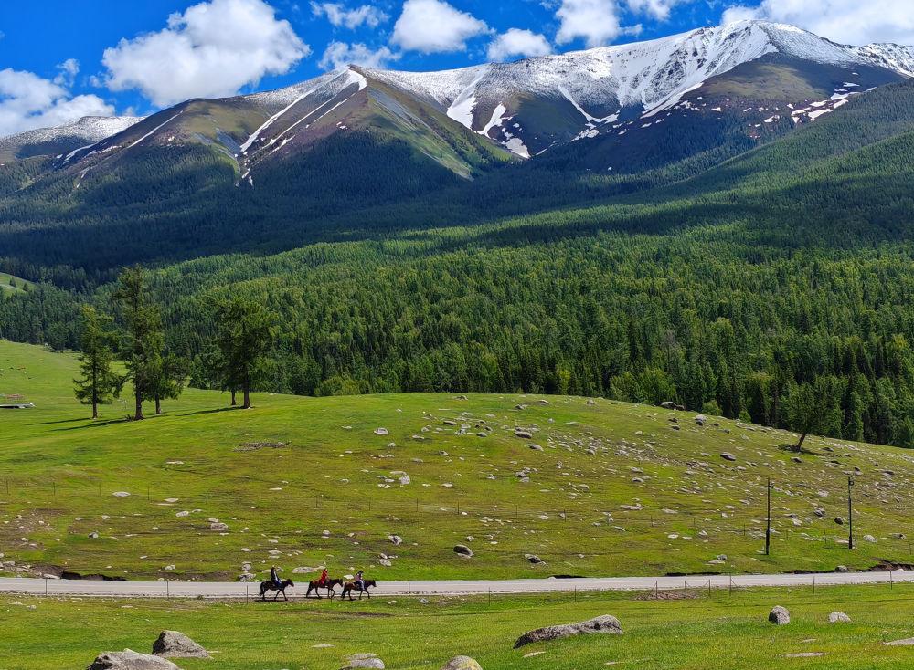 2024年6月4日,游客在新疆阿勒泰地區(qū)哈巴河縣騎馬游玩。電視劇《我的阿勒泰》播出后,新疆阿勒泰地區(qū)迎來(lái)客流高峰,“張鳳俠的小賣部”“巴太樹(shù)”“彩虹布拉克”等劇中地點(diǎn)成為熱門(mén)旅游打卡地。這場(chǎng)“邊城”與“熱劇”雙向奔赴的文旅盛宴,為當(dāng)?shù)亟?jīng)濟(jì)發(fā)展帶來(lái)新的增長(zhǎng)點(diǎn)。2024年5月,當(dāng)?shù)亟哟慰?15.03萬(wàn)人次,同比增長(zhǎng)60.81%;實(shí)現(xiàn)旅游收入36.53億元,同比增長(zhǎng)88.25%。