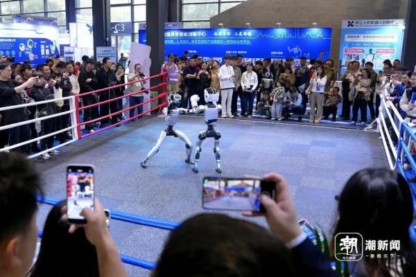 本屆“互聯(lián)網(wǎng)之光”博覽會打造了“超級體驗館”,“賽BOT SHOW場”上演具身機(jī)器人搏擊賽。記者 彭鵬 王志杰