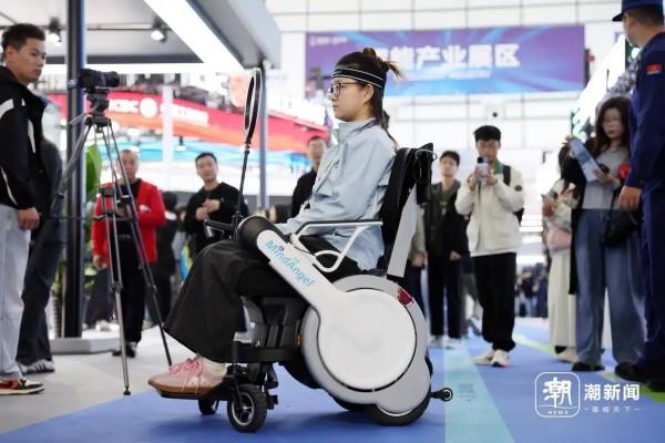“3、2、1,開打!”一場具身機(jī)器人搏擊賽激情上演,兩個戴著拳擊手套的機(jī)器人相對而立,一方迅捷左勾拳,另一方靈活回旋踢,金屬碰撞聲與陣陣驚呼喝彩聲交織;不遠(yuǎn)處,兩臺腦控輪椅同樣被圍得水泄不通,使用者無需手柄和人力輔助,僅憑“意念”便能掌控輪椅自如前行……