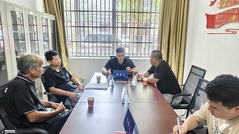 圖為5月29日,在白沙縣綜治中心先行調(diào)解室,調(diào)解員調(diào)解一起因檳榔苗采購引發(fā)的糾紛。 白沙縣綜治中心供圖