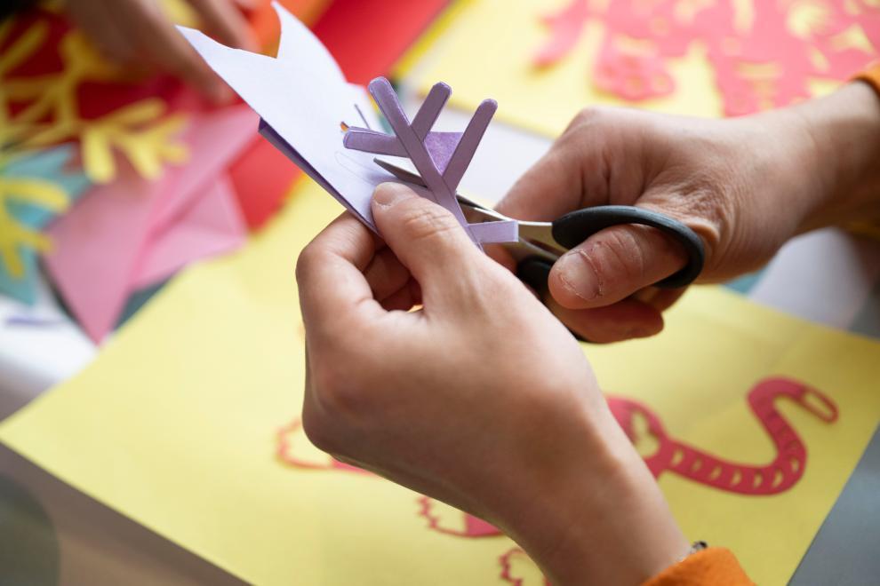11月26日,游客在Y783次“悠享龍江·銀旅號”旅游列車上體驗剪紙。新華社記者 張濤 攝