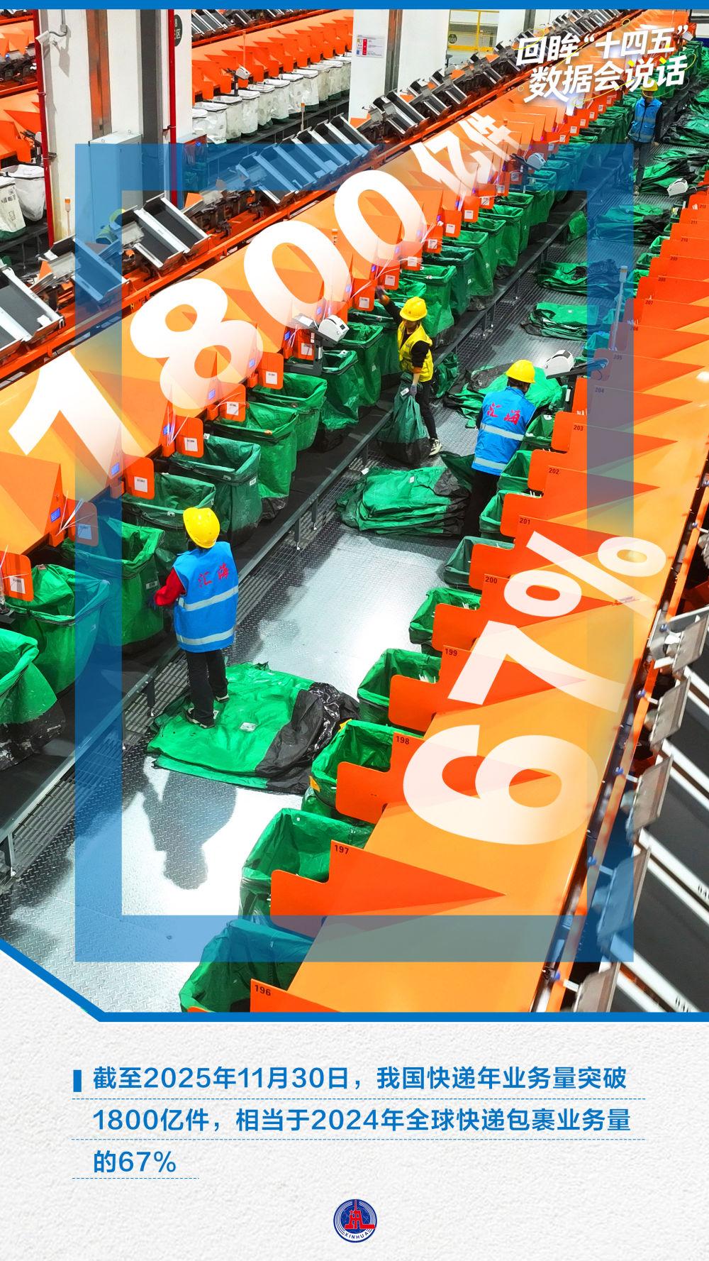 月均超160億件,單日最高7.77億件,每秒超6200件……1800億件快遞量質(zhì)提升,折射出中國(guó)經(jīng)濟(jì)蓬勃活力。