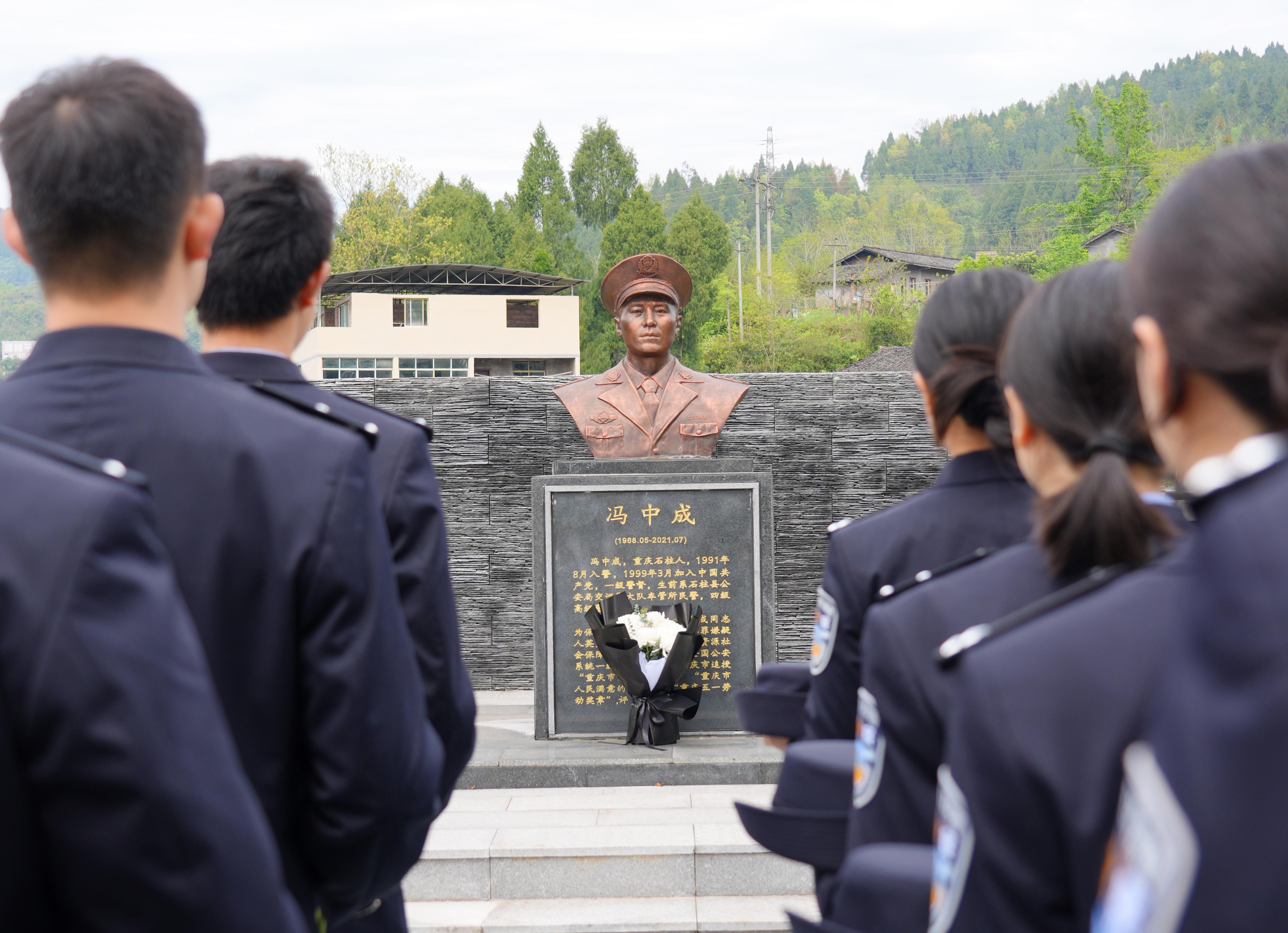 “爸爸,我們又來看您了……”4月1日,馮中成的女兒、兩江新區(qū)分局民警馮心言與分局同事及石柱縣公安局民警一同來到馮中成烈士墓前祭掃緬懷,言語間飽含思念。在馮中成烈士紀(jì)念館,兩江新區(qū)、石柱縣兩地民警瞻仰馮中成生前工作、學(xué)習(xí)、生活的珍貴圖片和實(shí)物資料,追憶烈士光榮事跡,并座談交流學(xué)習(xí)英烈事跡的體會(huì)感悟。