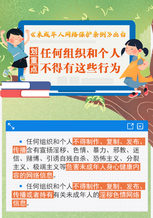 點(diǎn)擊請(qǐng)看《未成年人網(wǎng)絡(luò)保護(hù)條例》全文>>