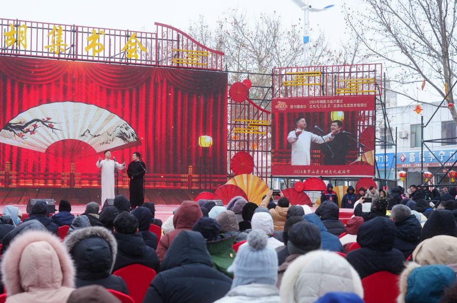 2月21日,農歷正月十二,山東省濱州市惠民縣雖然下起了雪,但擋不住曲藝愛好者的熱情。一大早,裹著各色頭巾、穿著厚厚羽絨服的各地群眾,就趕往惠民縣胡集鎮(zhèn)政和路……