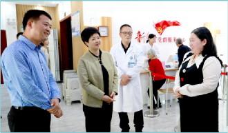 圖為全國人大代表藍(lán)景芬(左二)在浙江麗水景寧畬族自治縣大均鄉(xiāng)梅花圩村巡回診療點調(diào)研基本公共服務(wù)一體化工作。