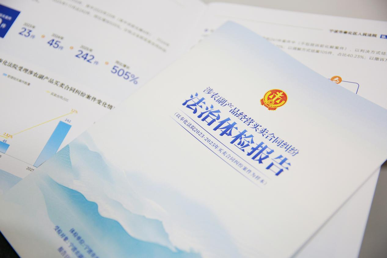如何讓專業(yè)的法律分析“飛入尋常百姓家”,真正起到“審理一案、治理一片”的效果,奉化區(qū)人民法院決定在形式上來點“新花樣”。2025年12月,部分市、區(qū)兩級人大代表、政協(xié)委員與經(jīng)營戶代表齊聚奉化區(qū)人民法院方橋法庭,共同見證了《涉農(nóng)副產(chǎn)品經(jīng)營買賣合同糾紛法治體檢報告》的發(fā)布。
