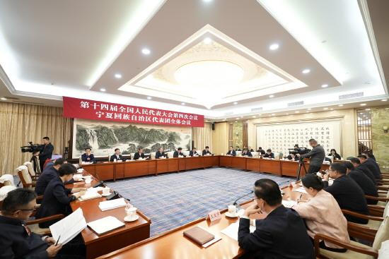 3月9日,十四屆全國人大四次會議寧夏回族自治區(qū)代表團(tuán)舉行全體會議,審議全國人大常委會工作報告、全國人大常委會關(guān)于法律清理工作情況和有關(guān)法律和決定處理意見的報告。 本報記者 李唯祎 攝