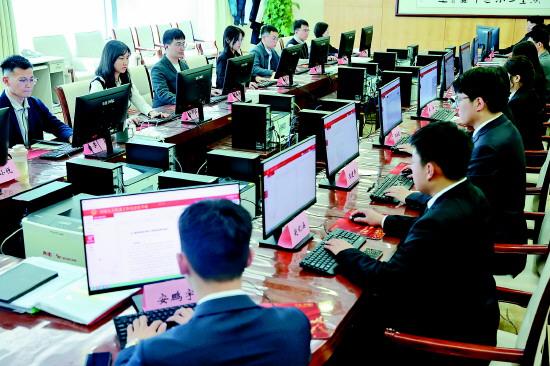 圖② 3月10日,十四屆全國人大四次會議秘書處議案組工作人員對收到的代表議案、建議進(jìn)行分類分析。