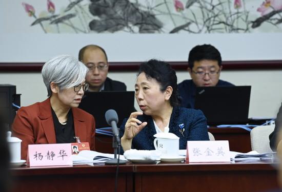 圖② 3月9日,全國政協(xié)十四屆四次會議舉行小組會議。圖為兩位政協(xié)委員在會議間隙分享履職感受。 本報記者 范瑞恒 攝