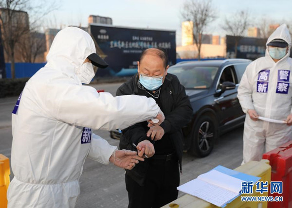 1月10日,石家莊市公安局裕華區(qū)交通警察大隊民警檢查外出車倆和人員的證件?!?/span>