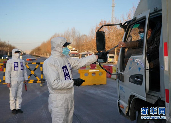 1月10日,石家莊市公安局高新技術(shù)產(chǎn)業(yè)開發(fā)區(qū)公安分局民警在藁城區(qū)通往市區(qū)的路口執(zhí)勤。