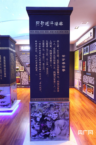 展館以圖片、文字、實(shí)物等形式全方位多視角展示中國古代北方草原少數(shù)民族法制沿革傳承歷史,具有展覽、陳列、存儲、教育等多項(xiàng)功能,填補(bǔ)了北方法律文化歷史沿革方面研究的空白。