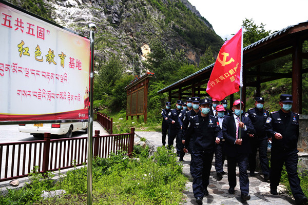 期間,各支部黨員同志參觀了駐地吉隆縣民族團(tuán)結(jié)教育基地——招提壁壘。在講解員的帶領(lǐng)下,黨員們了解了1788年??蛋矊④娐暑I(lǐng)清軍成功抵御外敵廓爾喀人入侵,收復(fù)吉隆捍衛(wèi)國家領(lǐng)土完整的守邊歷史事跡。隨后,參與活動(dòng)的黨員同志在民族團(tuán)結(jié)教育基地高舉黨旗集中開展宣誓,進(jìn)一步激發(fā)了黨員同志民族團(tuán)結(jié)的自豪感和維護(hù)祖國統(tǒng)一的使命感。