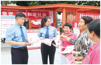 為加大力度打擊和處置非法集資,河南省洛陽市近日開展以“守住錢袋子·護好幸福家”為主題的宣傳活動。汝陽縣人民檢察院組織干警在社區(qū)體育廣場針對養(yǎng)老、涉農(nóng)、解債等領域開展防范非法集資宣傳,從源頭上遏制非法集資發(fā)生。圖為汝陽縣檢察院干警在社區(qū)體育廣場向群眾講解防范非法集資知識。