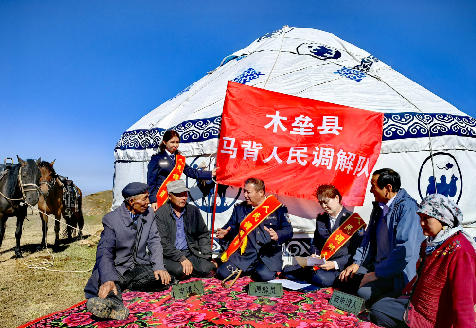 近年來,新疆維吾爾自治區(qū)木壘哈薩克自治縣司法局依托各牧區(qū)基層司法所,在該縣部分鄉(xiāng)鎮(zhèn)組建了“馬背調(diào)解隊”,深入牧區(qū)為牧民群眾排憂解難。圖為木壘縣司法局雀仁司法所“馬背調(diào)解隊”近日在牧場開展矛盾糾紛排查化解。