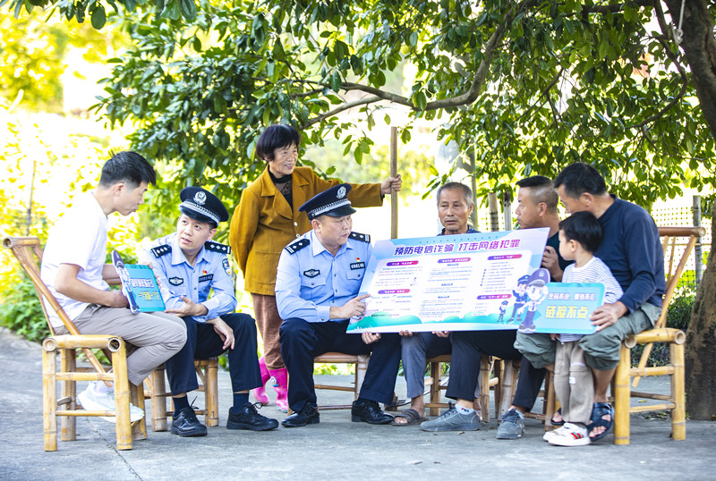 連日來,江西省橫峰縣公安局組織民警深入轄區(qū)農(nóng)村,通過分發(fā)宣傳手冊、互動答疑、解讀典型案例等形式,向農(nóng)村群眾講解電信網(wǎng)絡(luò)詐騙的常見套路和防騙知識,進(jìn)一步提高農(nóng)村群體的反詐防騙意識和能力。圖為10月24日民警進(jìn)村入戶開展反詐宣傳。 本報記者 黃輝 本報通訊員 薛南 攝