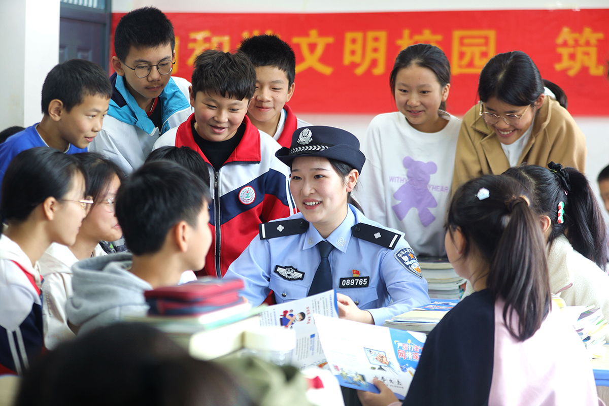 10月24日,安徽省舒城縣公安局網(wǎng)監(jiān)大隊聯(lián)合五顯派出所來到五顯鎮(zhèn)中心學(xué)校開展“網(wǎng)絡(luò)安全教育進課堂”宣傳活動,普及抵制網(wǎng)絡(luò)謠言、共筑文明網(wǎng)絡(luò)空間的安全防護知識,引導(dǎo)學(xué)生增強網(wǎng)絡(luò)安全意識。圖為民警回答學(xué)生有關(guān)網(wǎng)絡(luò)安全的提問。 本報通訊員 王可海 攝
