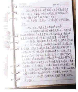 圖③ 孔笛在日記本上記錄當天走訪居民的情況。