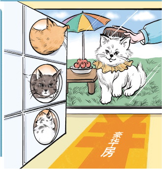 在了解寄養(yǎng)房間的規(guī)格后,她更加震驚:標(biāo)準(zhǔn)間就是一個(gè)寵物柜,一大排柜子排在一起,空間不是很大。當(dāng)她和商家說(shuō)寵物平時(shí)是放養(yǎng)的后,商家建議她用最豪華的寵物柜,每天有3次半小時(shí)的放養(yǎng)“遛彎”時(shí)間,貓糧、貓罐頭、貓砂等生活用品價(jià)格另算,洗澡、美容等服務(wù)價(jià)格也不包括在內(nèi)。