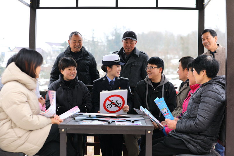 2月26日,安徽省舒城縣公安局交管大隊民警來到闕店鄉(xiāng)楓嶺村開展交通安全宣傳活動,民警通過拉家常方式向村民普及道路交通安全法律法規(guī),提醒廣大村民安全文明出行。圖為民警向村民講解道路交通安全知識。