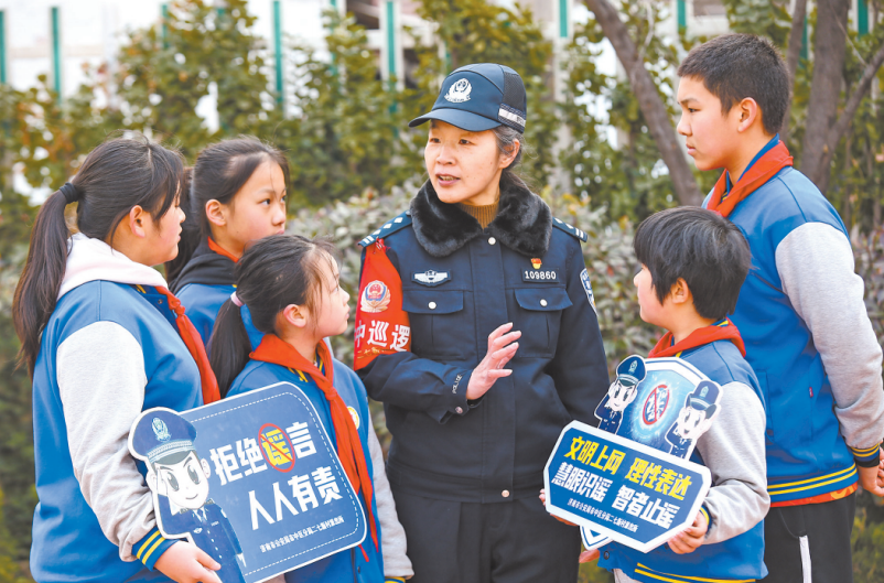 2月21日,山東省濟(jì)南市公安局市中分局二七新村派出所社區(qū)民警來到育明小學(xué),開展“安全上網(wǎng) 護(hù)苗成長”網(wǎng)絡(luò)安全宣傳教育活動(dòng)。圖為活動(dòng)現(xiàn)場(chǎng)。