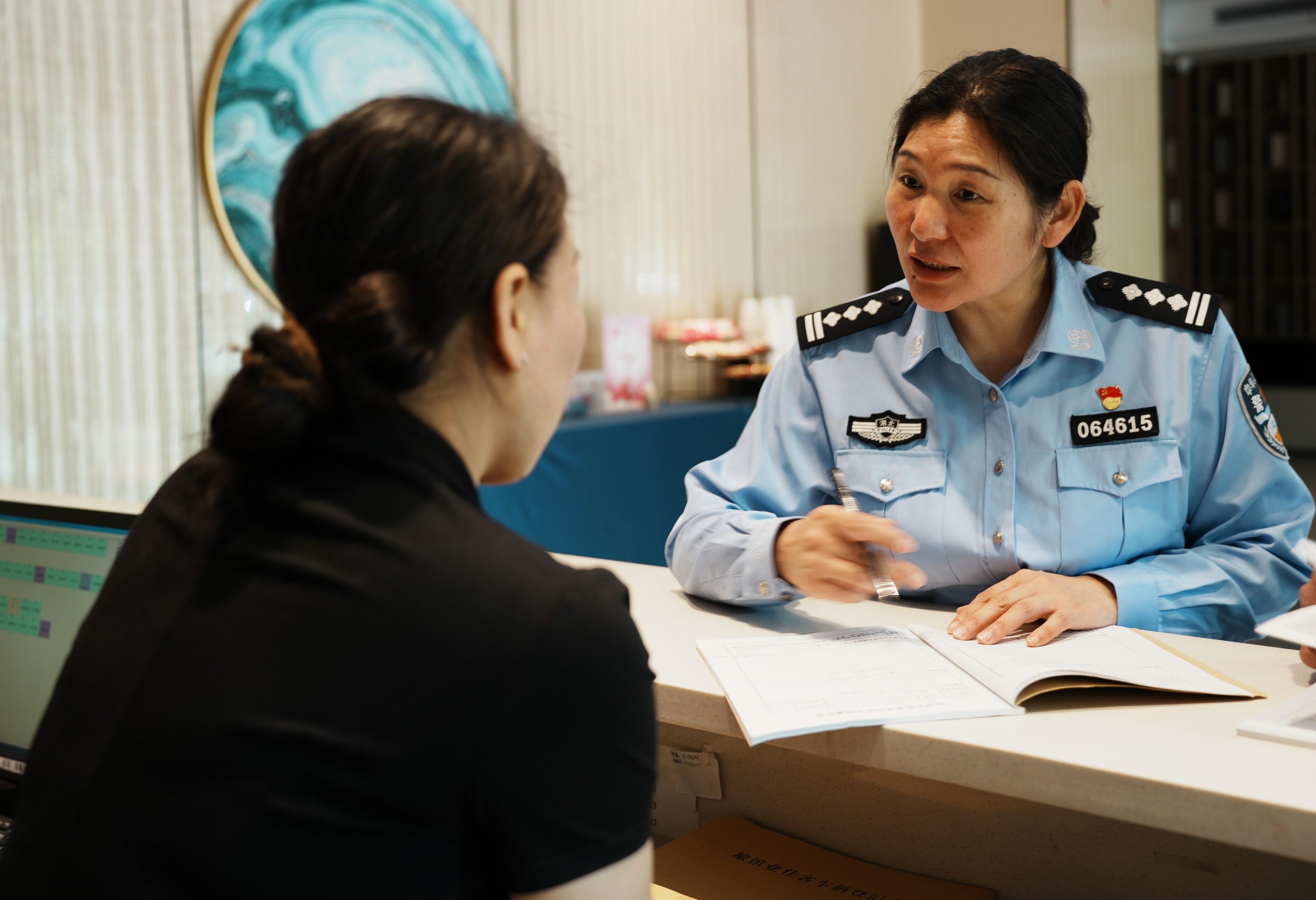 圖為社區(qū)民警劉瑞玲在對(duì)轄區(qū)單位場(chǎng)所開展例行檢查。
