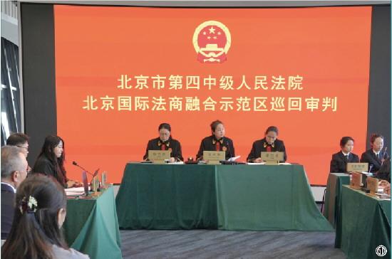 圖① 2025年11月13日,北京市第四中級人民法院巡回審判庭在麗澤商務(wù)區(qū)開庭,敲響了《關(guān)于建設(shè)北京國際法商融合示范區(qū)的實施方案》公布后國際商事巡回審判的“第一槌”。