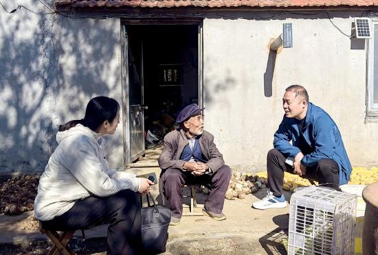 圖為2025年11月,張開強(qiáng)(右一)到行政復(fù)議申請人家中了解房屋征收補(bǔ)償情況。 本報(bào)通訊員 薄懷享 攝