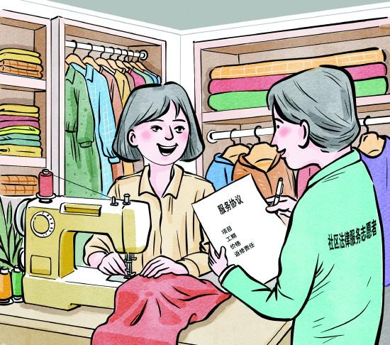 北京市豐臺區(qū)的陳女士曾在服裝廠做流水線車工,每天不僅工作辛苦,還有嚴格的上下班考勤,后來工廠搬遷到外地,她不愿背井離鄉(xiāng),便在家附近的小區(qū)一樓租了一間空房,于去年三月開了一家依靠老顧客介紹的手工改衣店。開店后,社區(qū)法律服務志愿者為她定制相關服務協(xié)議,寫明項目、工期、價格、返修責任,避免了可能發(fā)生的糾紛。在社區(qū)做了登記備案后,居民更信任,改衣店的客源也比之前多了一倍。
