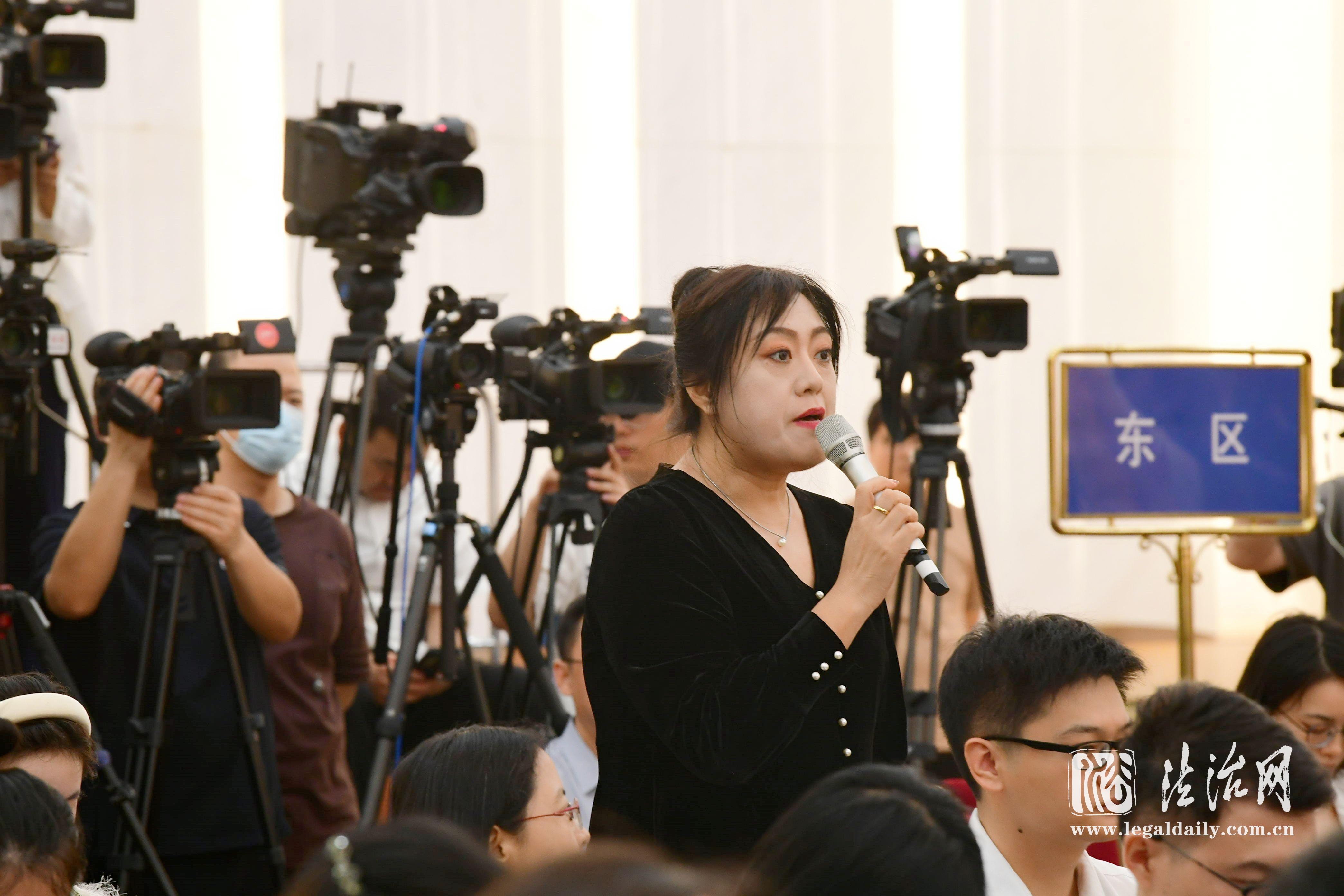 9月13日下午,全國(guó)人大常委會(huì)辦公廳舉行新聞發(fā)布會(huì)。圖為法治日?qǐng)?bào)記者提問(wèn)。張峻銘 攝