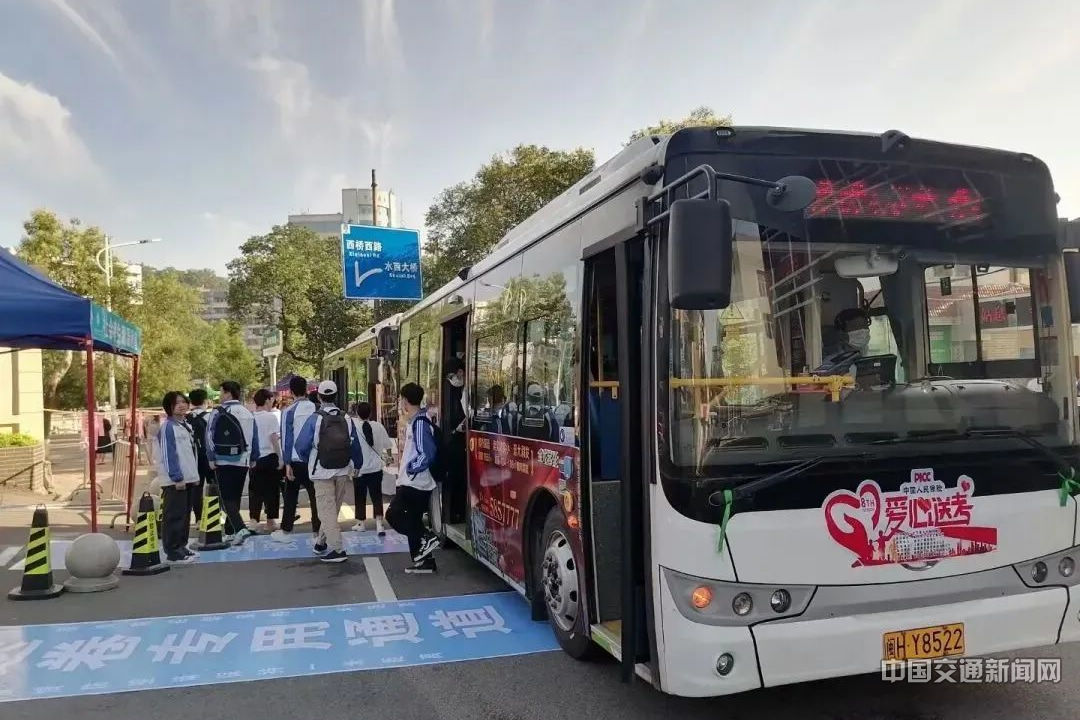 記者從福建省交通運輸廳獲悉,高考首日,全省共組織出租汽車4000余輛、公交車3200余輛、“點對點”包車241輛參加“愛心送考”,接送考生約40.6萬人次??忌鷳{準考證可免費乘坐各地公交車、福州地鐵1號線和2號線。福州多個考點大門外,一輛輛張貼“愛心送考”車標、系著綠色絲帶的出租汽車整齊停放,志愿者們隨時待命,及時為有需要的考生提供應急保障服務。