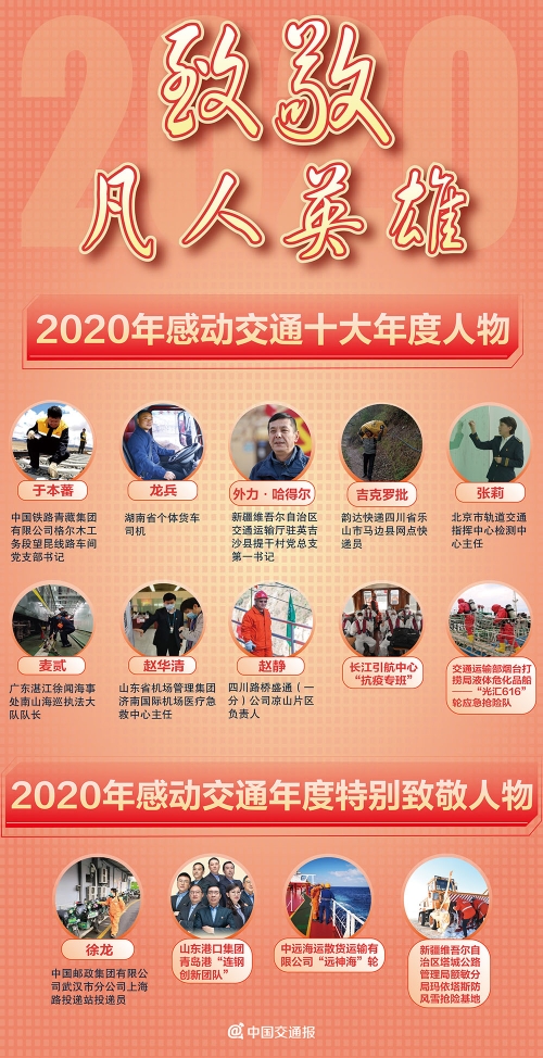 偉大寓于平凡之中。決勝小康,決戰(zhàn)疫情,在2020這極不平凡的一年里,交通運(yùn)輸行業(yè)涌現(xiàn)出一批來自基層一線的凡人英雄。