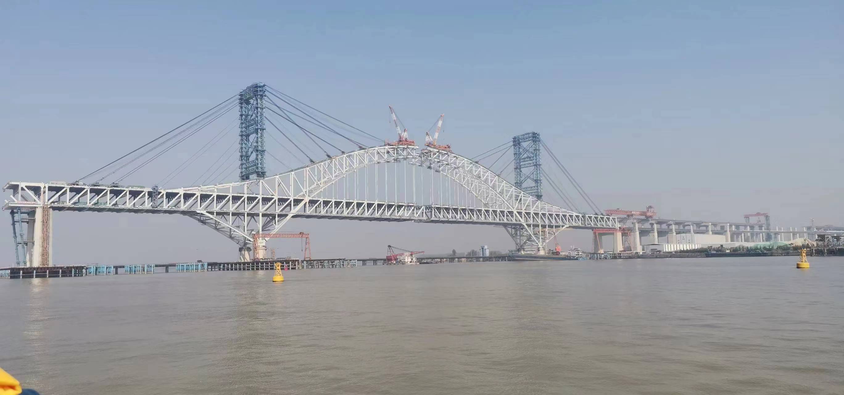 站在泰興市虹橋鎮(zhèn)的長江岸邊,放眼望去,江心高聳的鉆石型主塔直指藍(lán)天,兩側(cè)蛟龍般的鋼桁拱橋橫臥江面,這就是由江蘇省交通工程建設(shè)局建設(shè)、中交集團(tuán)所屬中交二航局參建的常泰長江大橋。主跨長達(dá)1208米的主航道橋和兩側(cè)天星洲、錄安洲兩座專用航道橋連接貫通后,將成為長江上首座集高速公路、城際鐵路、一級公路“三位一體”的過江通道。大橋分為上下兩層,上層為雙向六車道高速公路,下層為兩線城際鐵路與普通公路并行。建成通車后,常州、泰州兩城間的交通將由原先的幾小時縮減至30分鐘,長江南北兩岸的人流和物流的便利性將大大加強(qiáng)。