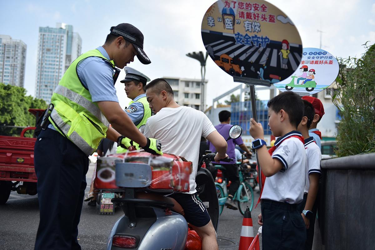 8月24日早,四川省綿陽(yáng)市公安局交警支隊(duì)直屬一大隊(duì)與轄區(qū)小學(xué)共同組織開展文明交通勸導(dǎo)體驗(yàn)活動(dòng),進(jìn)一步提高小學(xué)生的交通安全意識(shí)。